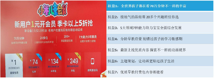 <p><strong>        </strong>从互联网电视收费套餐从统一收费逐步走向分内容板块收费，依板块内容制定不同收费策略，为付费会员提供差异化服务。如某互联网电视厂家对儿童会员付费设置七大不同付费权益，以内容吸引家长订购。</p>