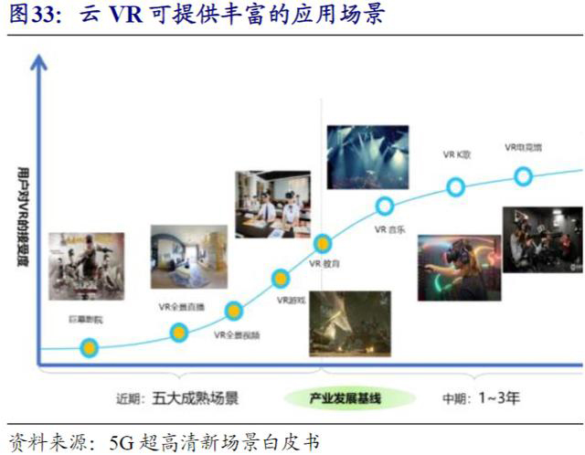 <p><strong>        </strong>目前，VR已经广泛应用在房地产、会展、游戏娱乐等行业，5G到来后，VR有望解锁更多业务场景。VR在传媒领域的应用也会被进一步发掘，主要业务场景包括直播、新闻、影视、营销、社交等，随着5G商用的到来，VR产业正在进入高速发展阶段，有望成为引领全球新一轮产业变革的重要力量。</p>