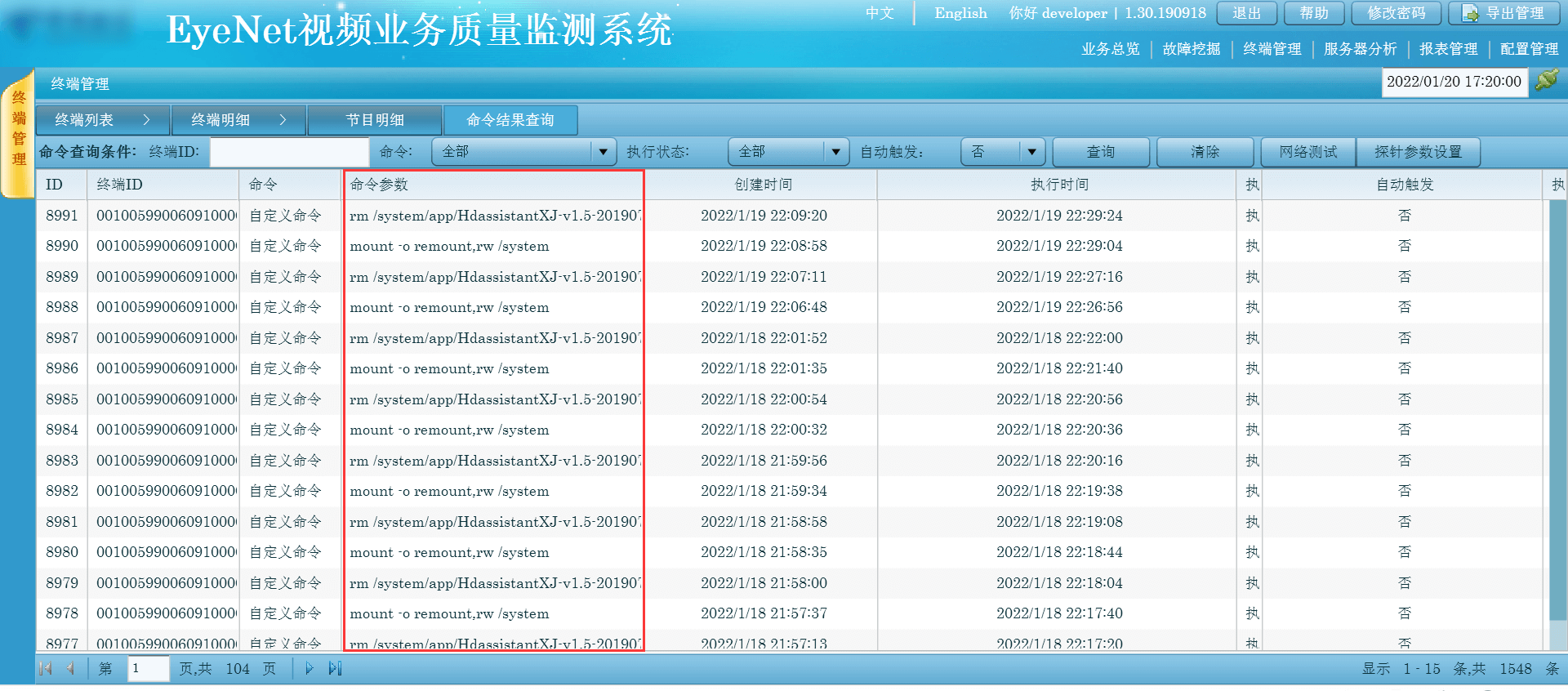 <p><strong><span style="color: #007aaa;">解决方法：</span></strong>德科仕视频 CEM系统除了具备视频视频质量监测以外，还可以向机顶盒远程下发命令，如ping、 traceroute、抓包和自定义操作等命令，当运营商机顶盒出现问题，判断是某个apk软件运行异常导致的，德科仕运维人员通过视频 CEM系统远程批量下发命令对异常apk软件进行删除，处理完成后，用户可以正常观看电视，再无出现异常报错。</p>