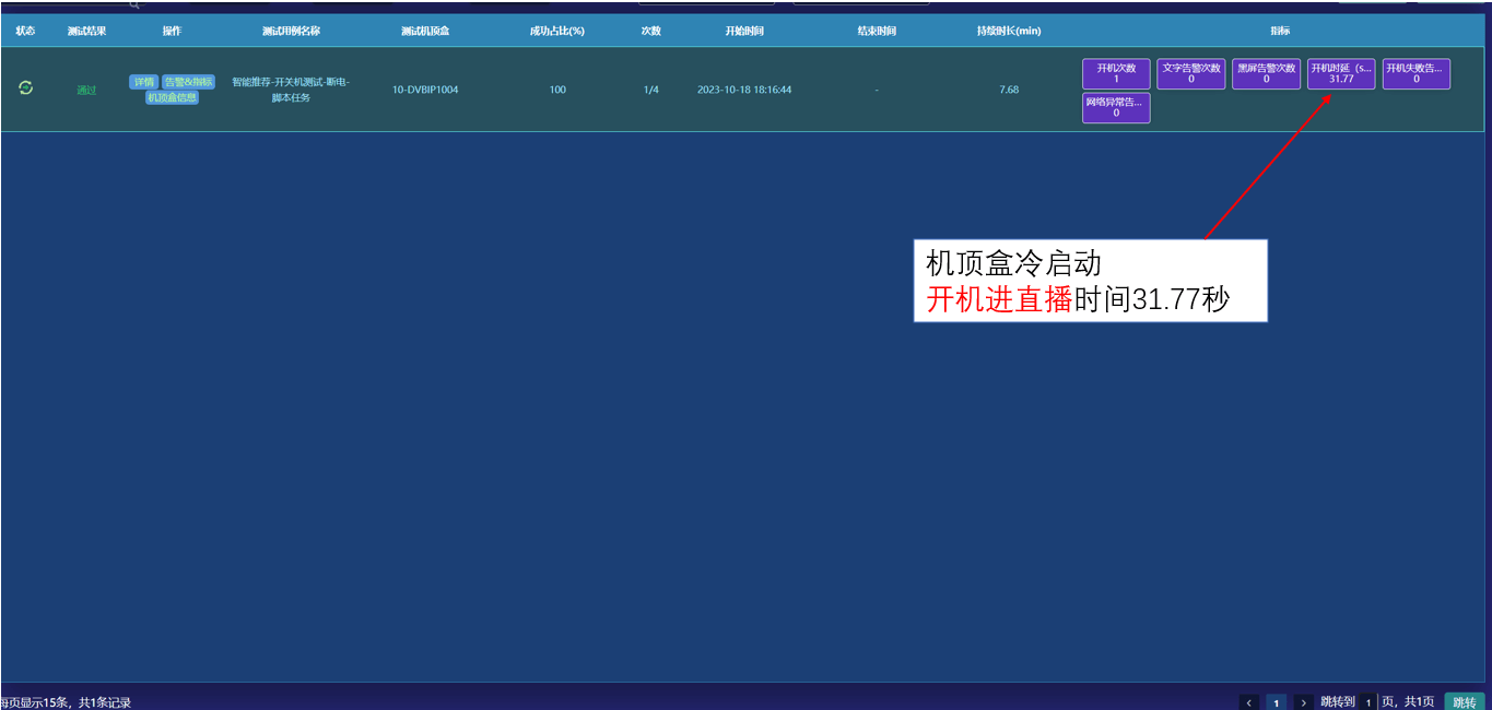<p><strong>        </strong>快速开关机是近期上线的重要功能，有开机进主页、开机进直播两种模式，通过自动遍历脚本，实现对机顶盒长时间频繁的开关机测试，检测出开机失败异常弹框、开机进直播黑屏、开机未正常进主页等多种异常情况，为产品部门提供更丰富的测试数据，从而实现 “开机进直播”功能优化，极大缩短了开机时间。</p>