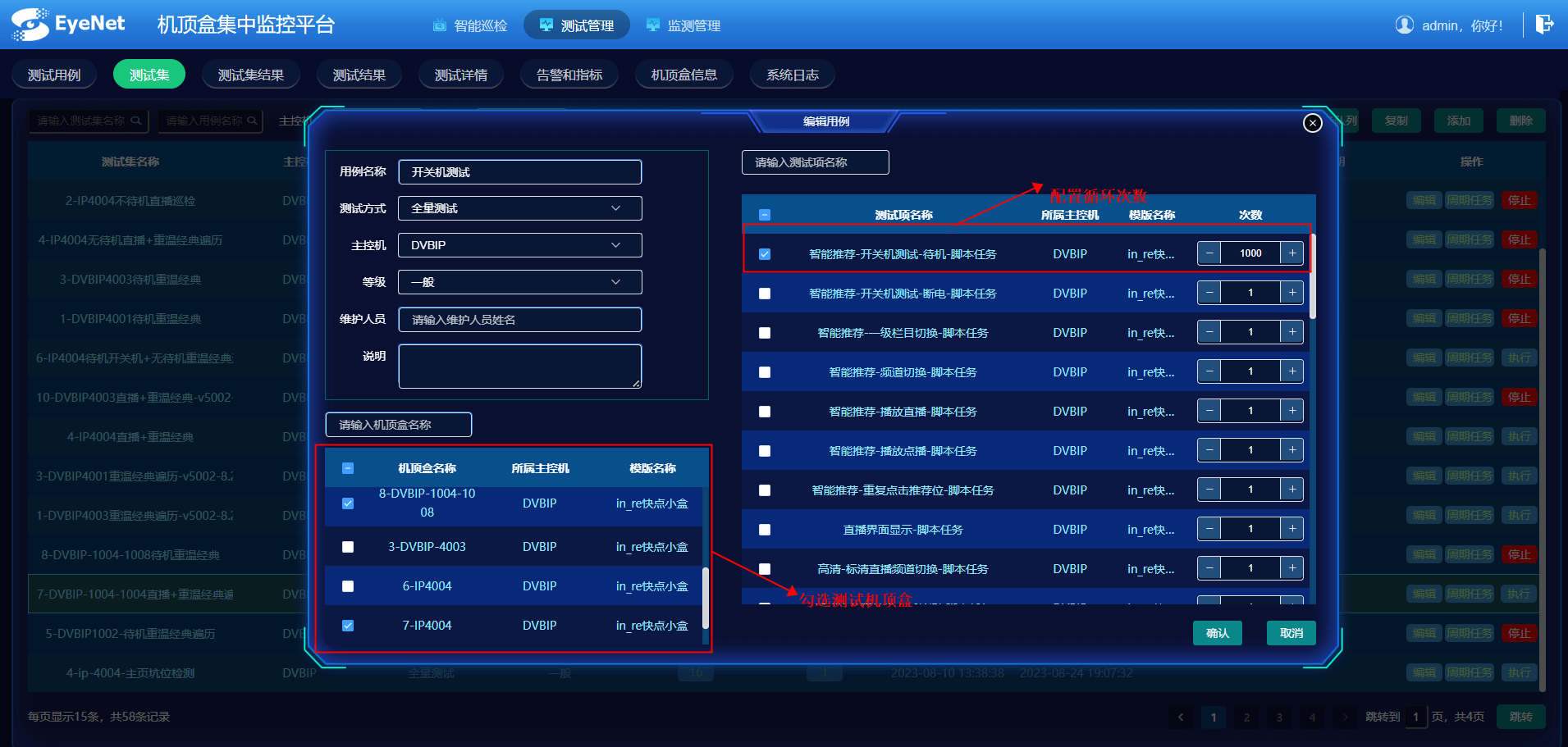 <p><strong>        </strong>测试设备实时采集机顶盒HDMI接口输出的视频信号及机顶盒网口的网络报文，通过智能AI图片识别技术，自动识别出开机过程中出现的黑屏、弹框等各种异常情况，同时通过逐帧分析智能检测开机进入直播画面或者首页面的时间点，与开机按键按下时间相比，准确（精度可达40ms）检测真实开机时间。</p>