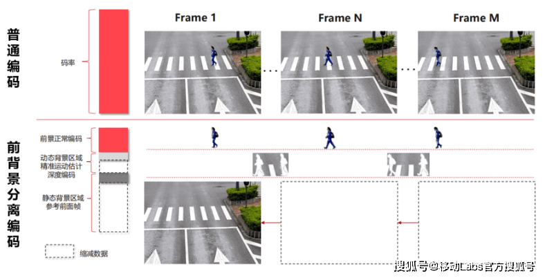 <p><strong>        </strong>通过对视频画面的前后景进行分离，采用不同的编码策略对其进行压缩，从而达到降低码率的目的。具体来说，前端AI扫描视频画面，无运动的背景图像采用较低分辨率进行编码，人眼敏感的前景图像采用高分辨率编码，并结合智能P帧设计，升级传统长GOP方案，间断性插入智能P帧，降低冗余信息，达到降码率的目的。</p>